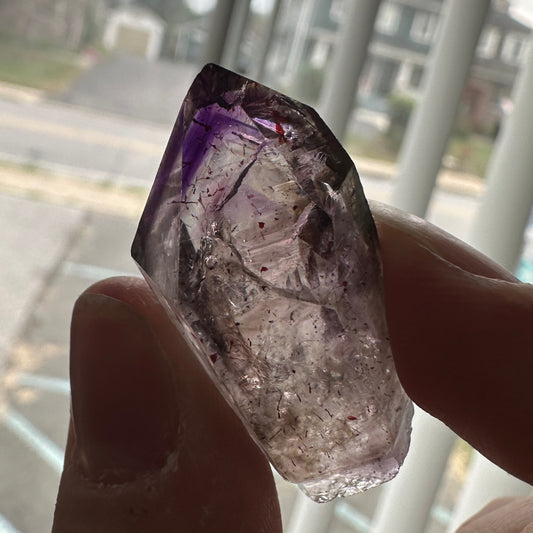 Hematite Included Phantom Amethyst Perky Box Specimen from Zimbabwe