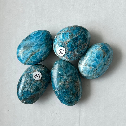 Small Tumbled Teal Blue Apatite Palm Stone from Brazil