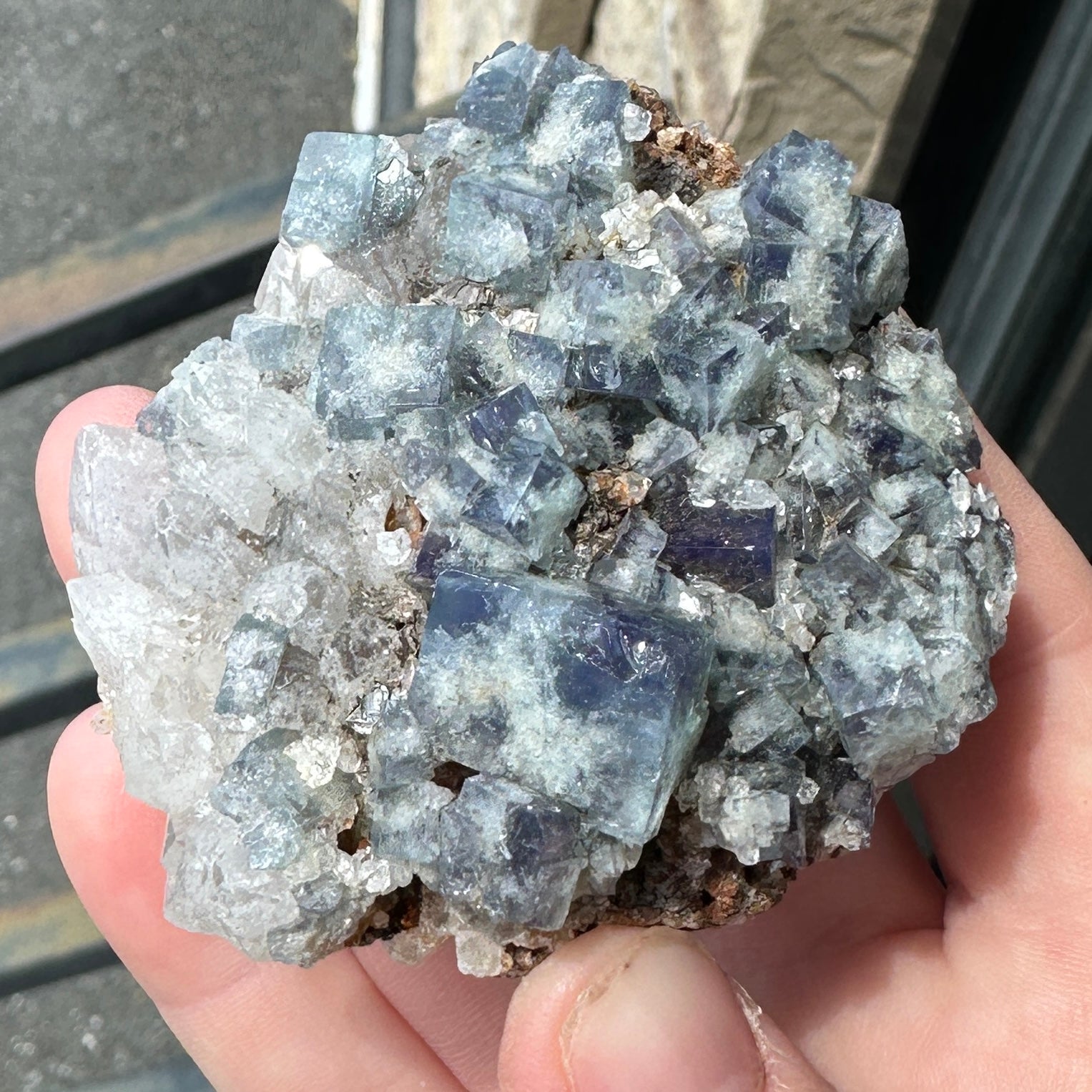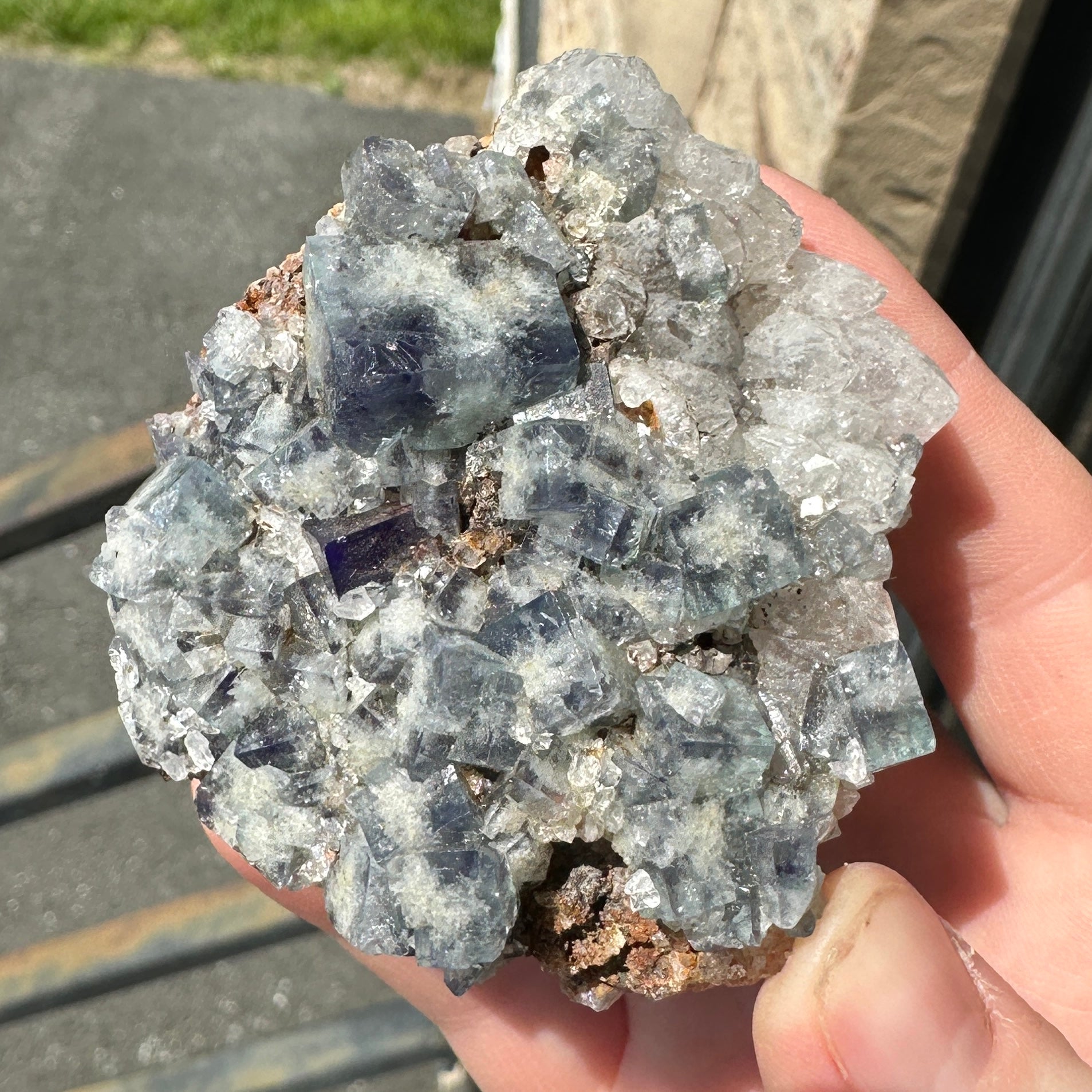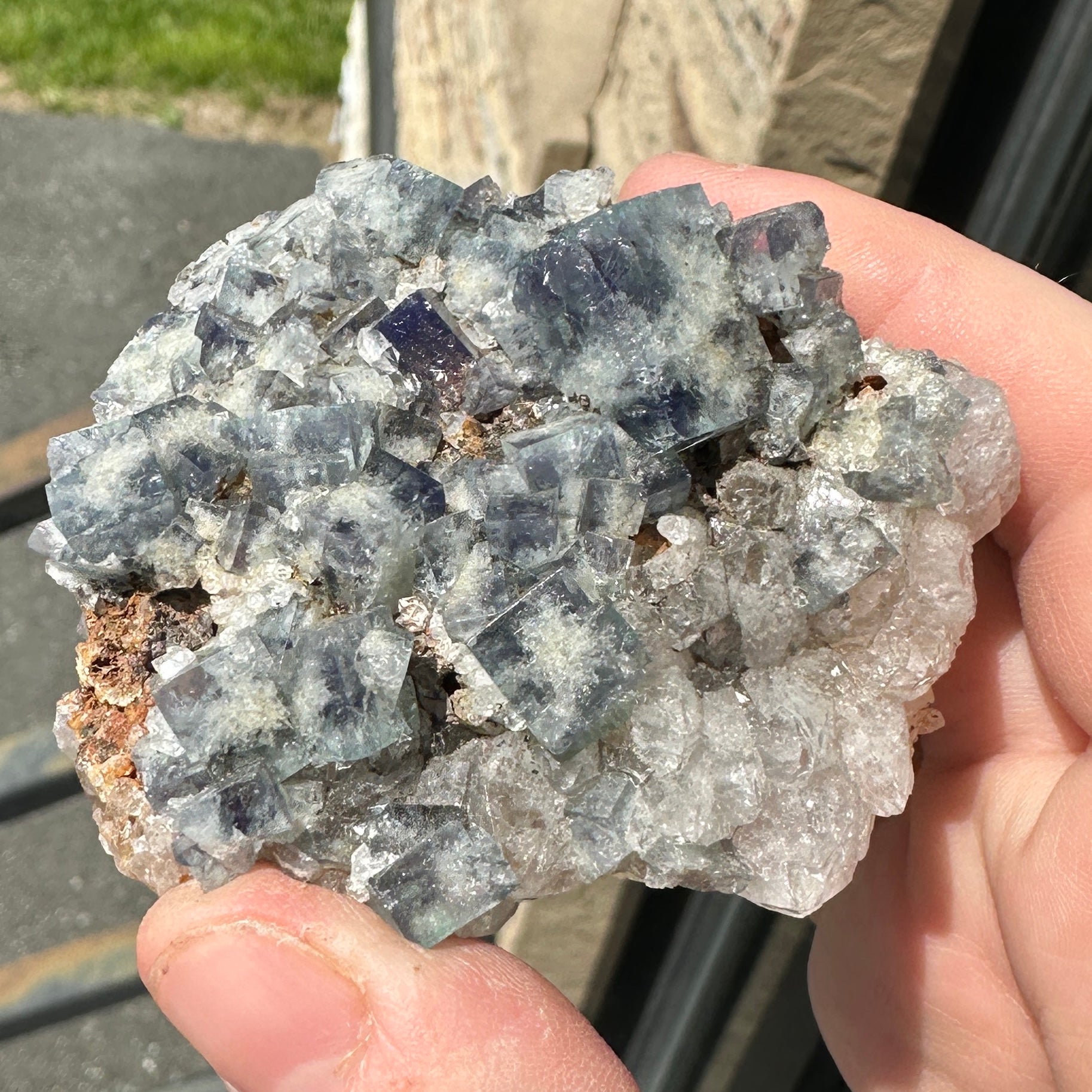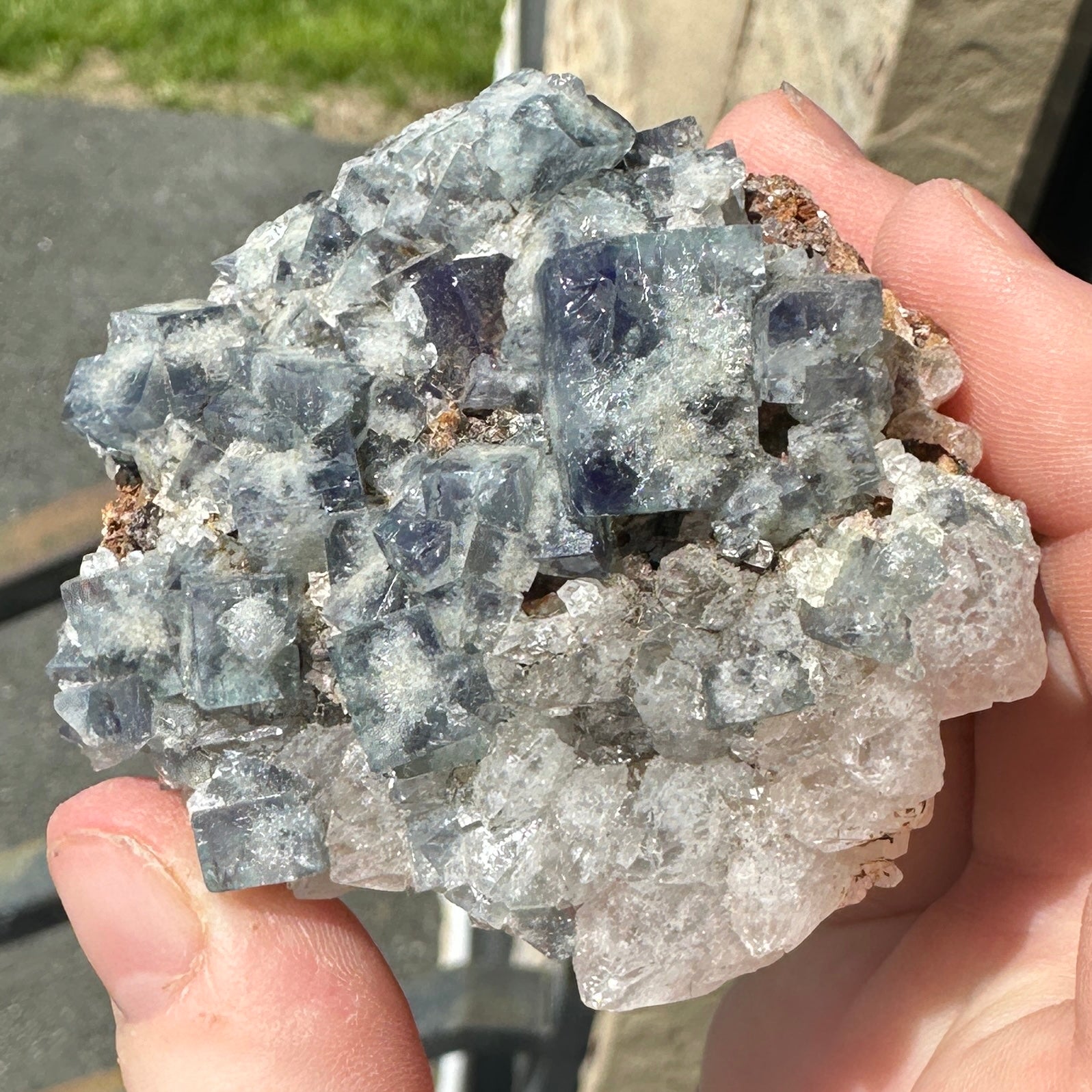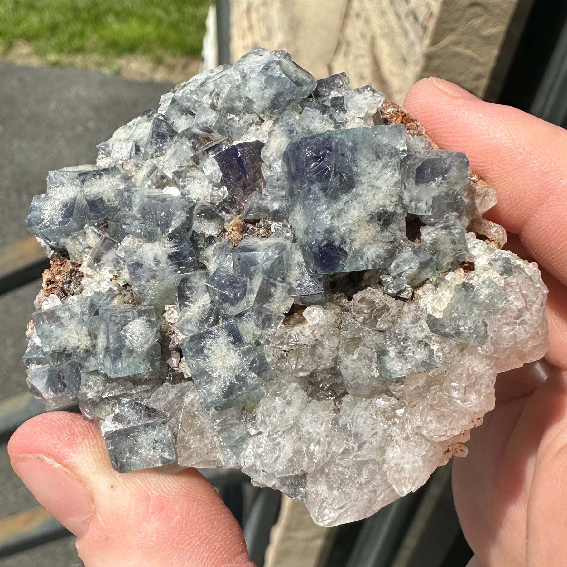 Cabinet Size Green-Blue Daylight UV Reactive Fluorite with Quartz from the Hidden Forest Pocket, Diana Maria Mine, UK