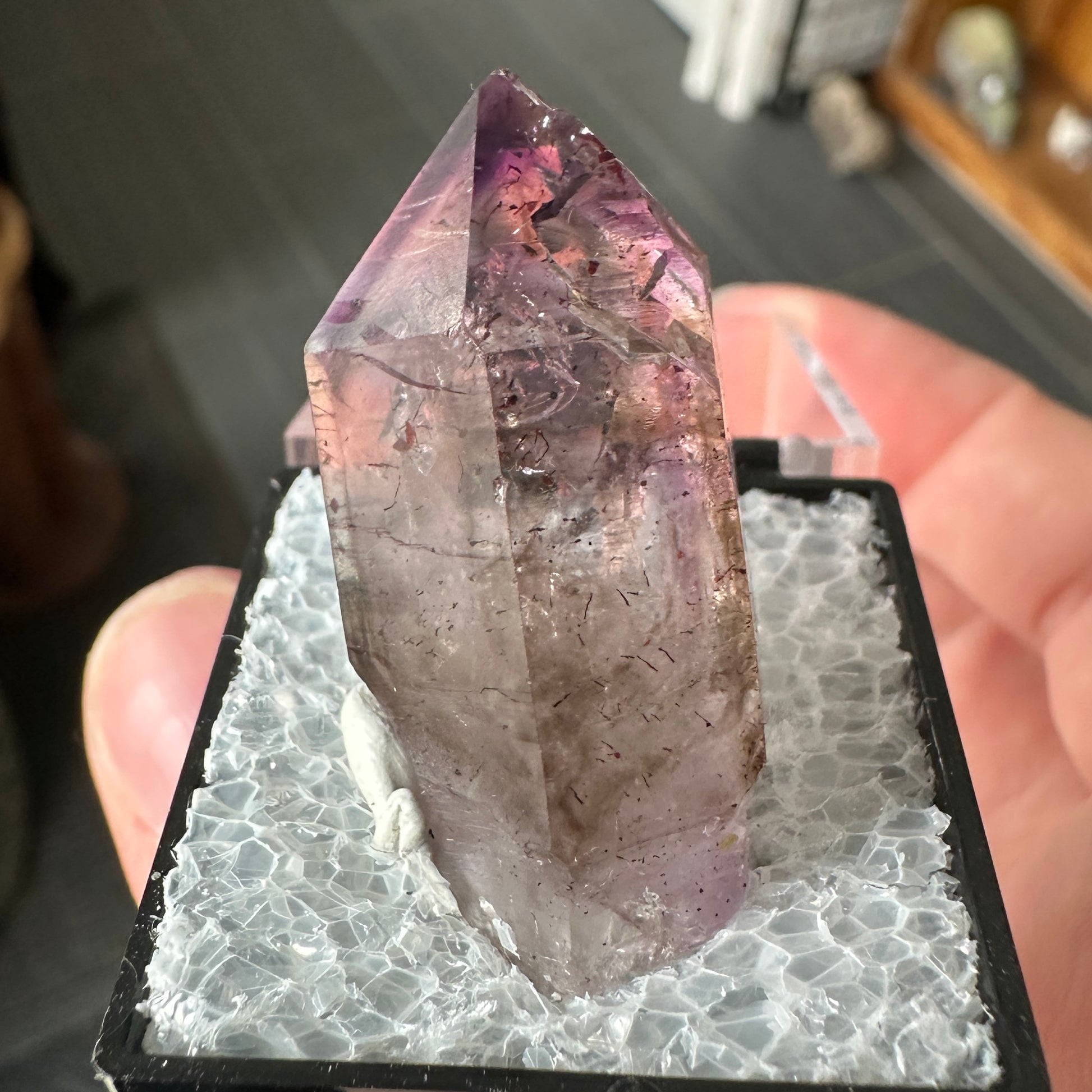 Hematite Included Phantom Amethyst Perky Box Specimen from Zimbabwe