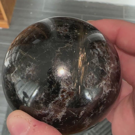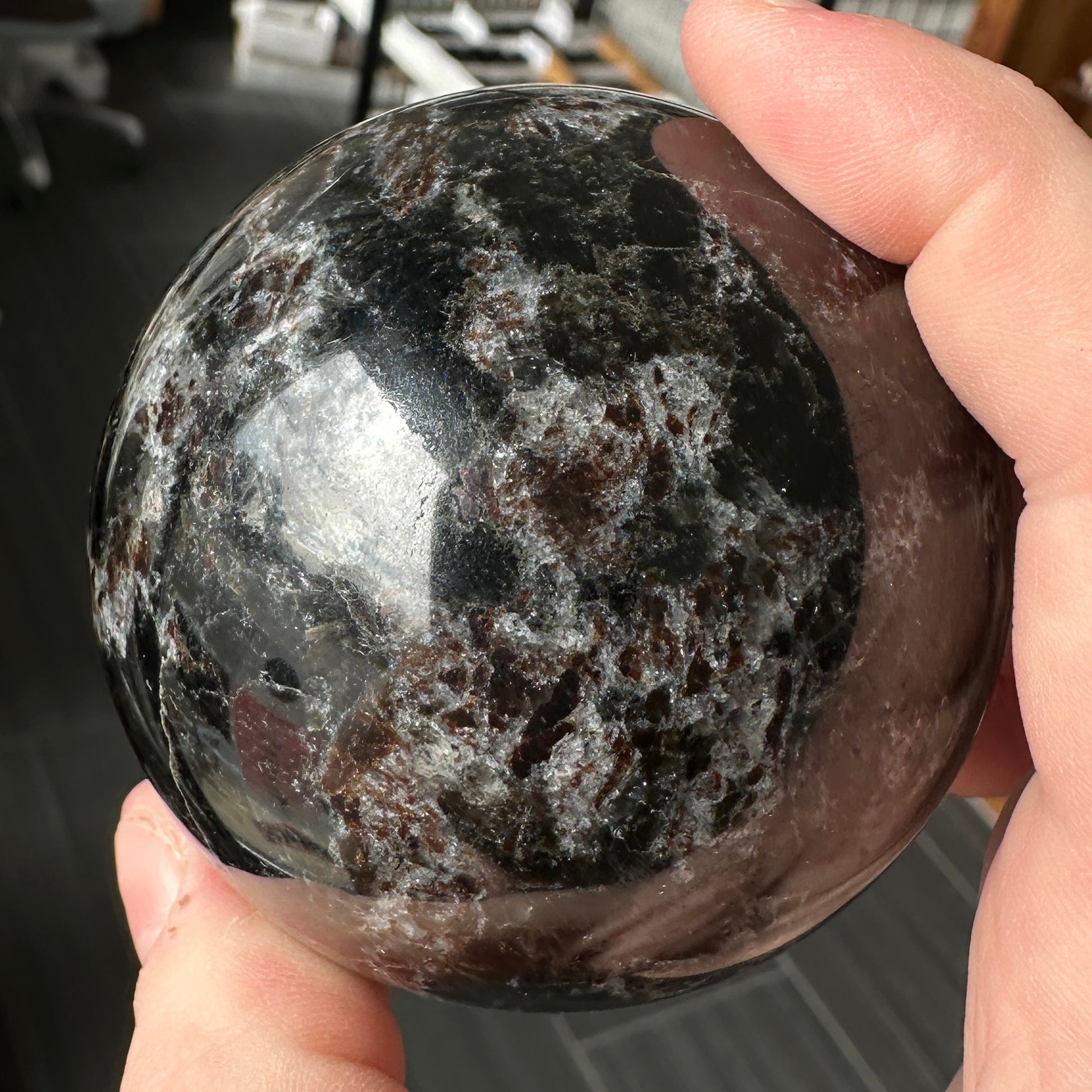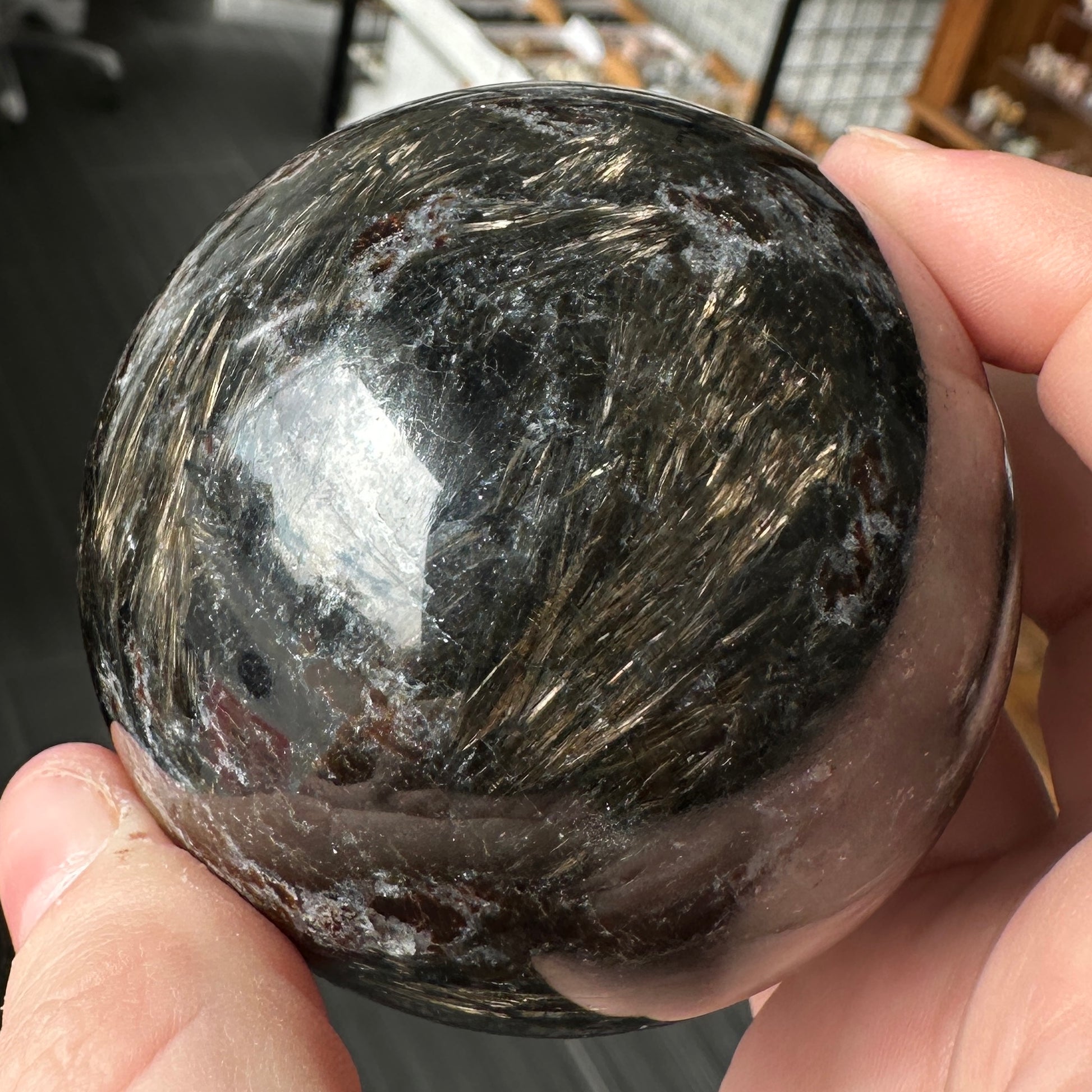 Radiant 6.80cm Astrophyllite and Garnet Sphere from India