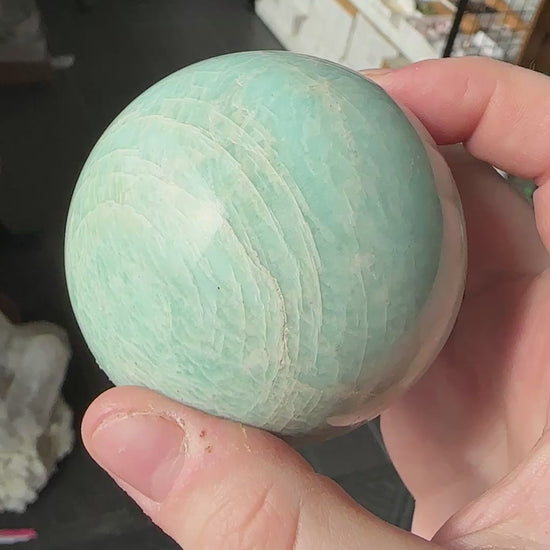 Vibrant Blue Green Amazonite Sphere from Brazil